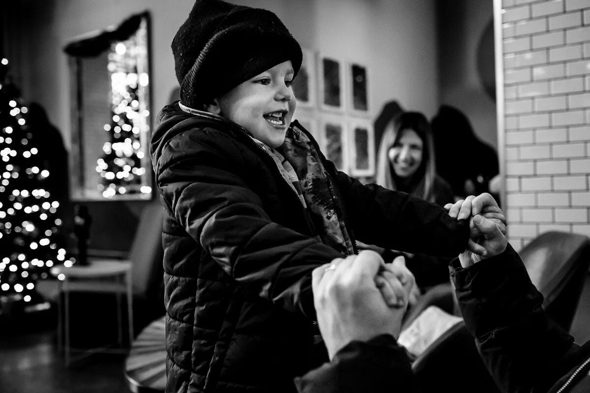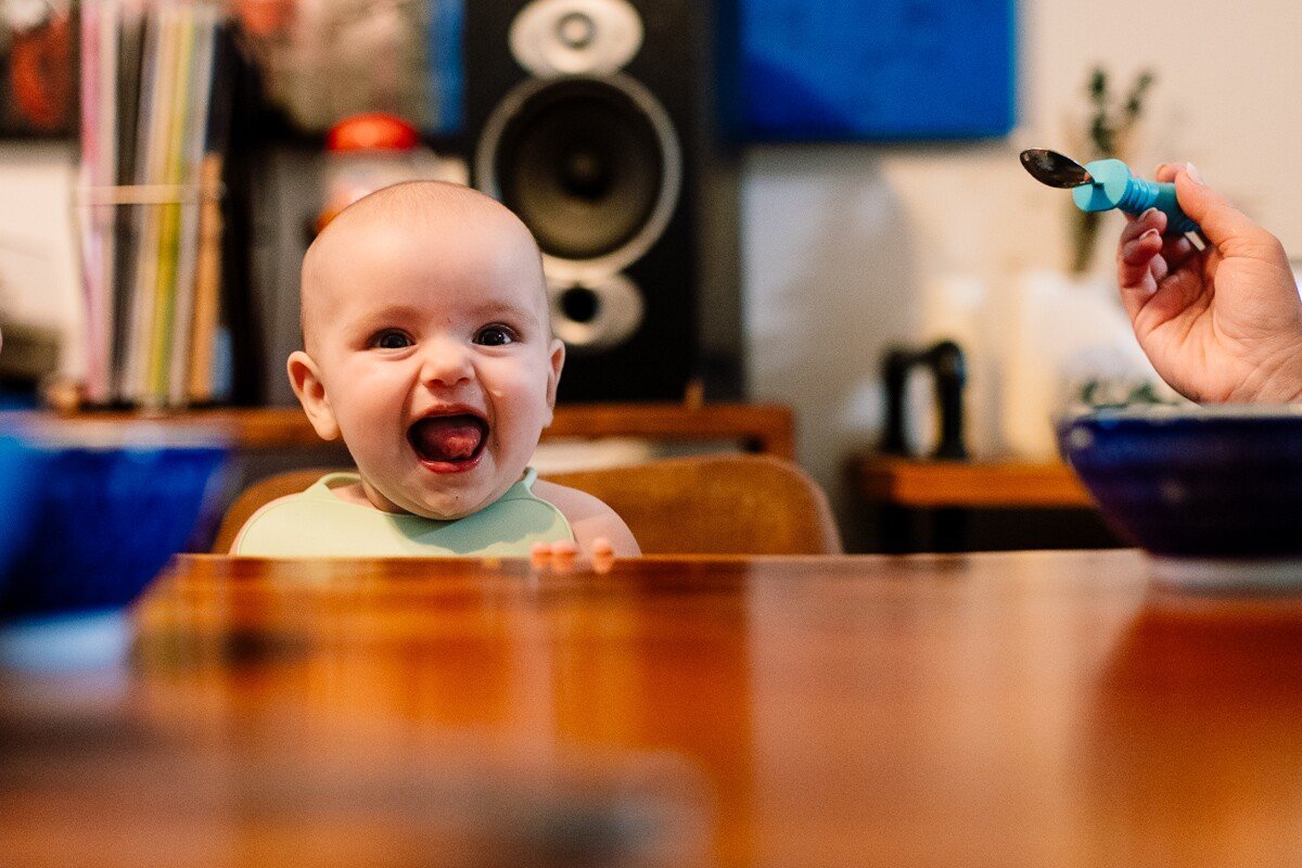 Mornings blur together. Meals are loud. Someone is always dancing, someone else is just learning how to eat, and the dog is never far from the action. This documentary family session, photographed in the Junction, was about preserving that exact feeling — busy, frantic, connected.
