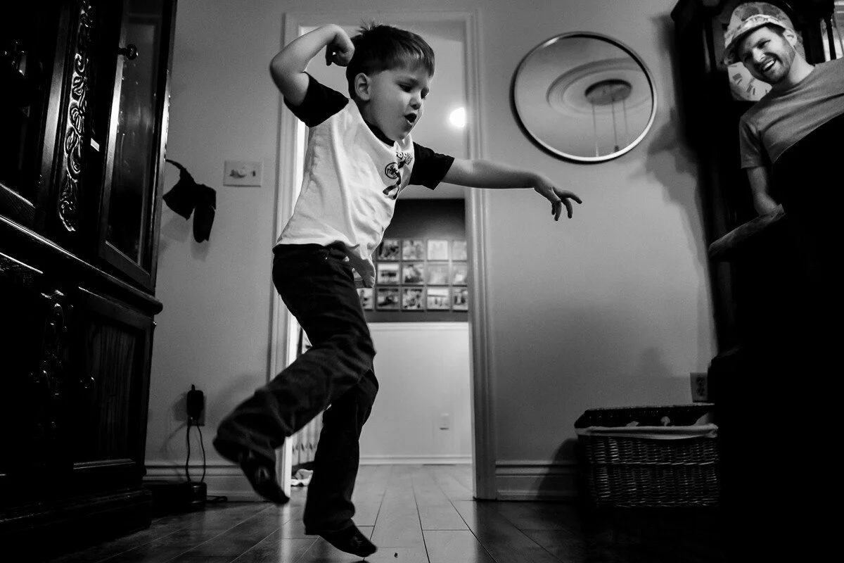 Her four-year-old brother brought the energy. Breakfast quickly turned into a dance party, led entirely by him, with the rest of the family following along. Nothing planned. Nothing directed. Just a moment that unfolded naturally.