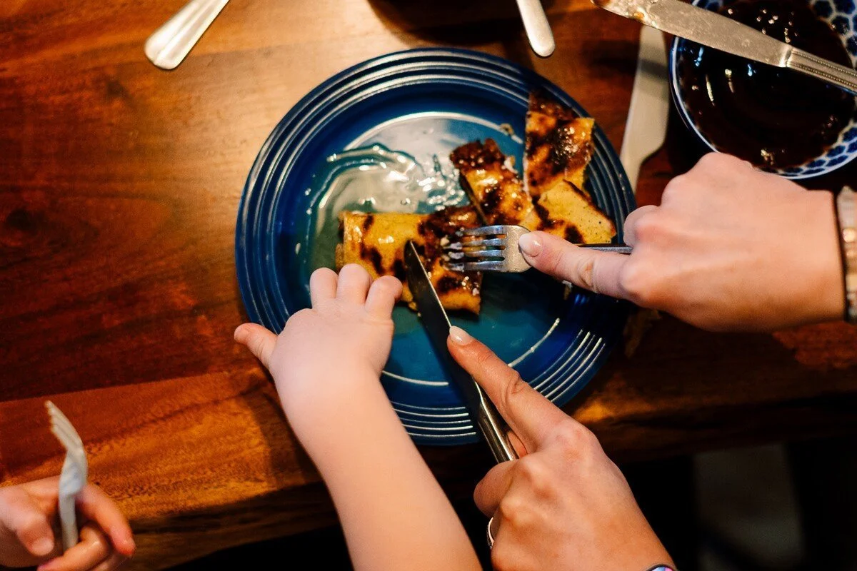 We began at home on a Saturday morning, gathered around the table for breakfast. Pancakes, bacon, syrup— all the good stuff. The six-month-old was having her very first bites of “real food,” a small but meaningful milestone the family chose to document as it happened. Curious looks, tentative tastes, proud parents watching closely.