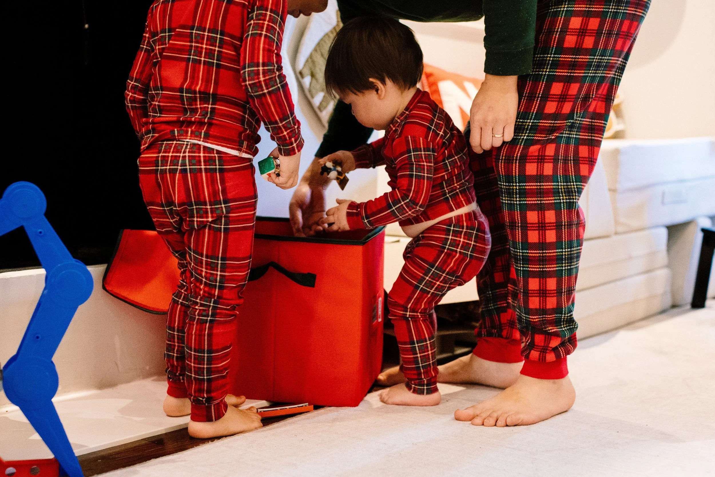 This Documentary Family Session took place on a quiet Sunday morning in the Roncesvalles neighbourhood, inside the family’s home. No schedules to rush, no plans beyond the simple joy of being together. Just mom, dad, and their two young boys, fresh from breakfast, still in their pyjamas, ready to decorate the Christmas tree.