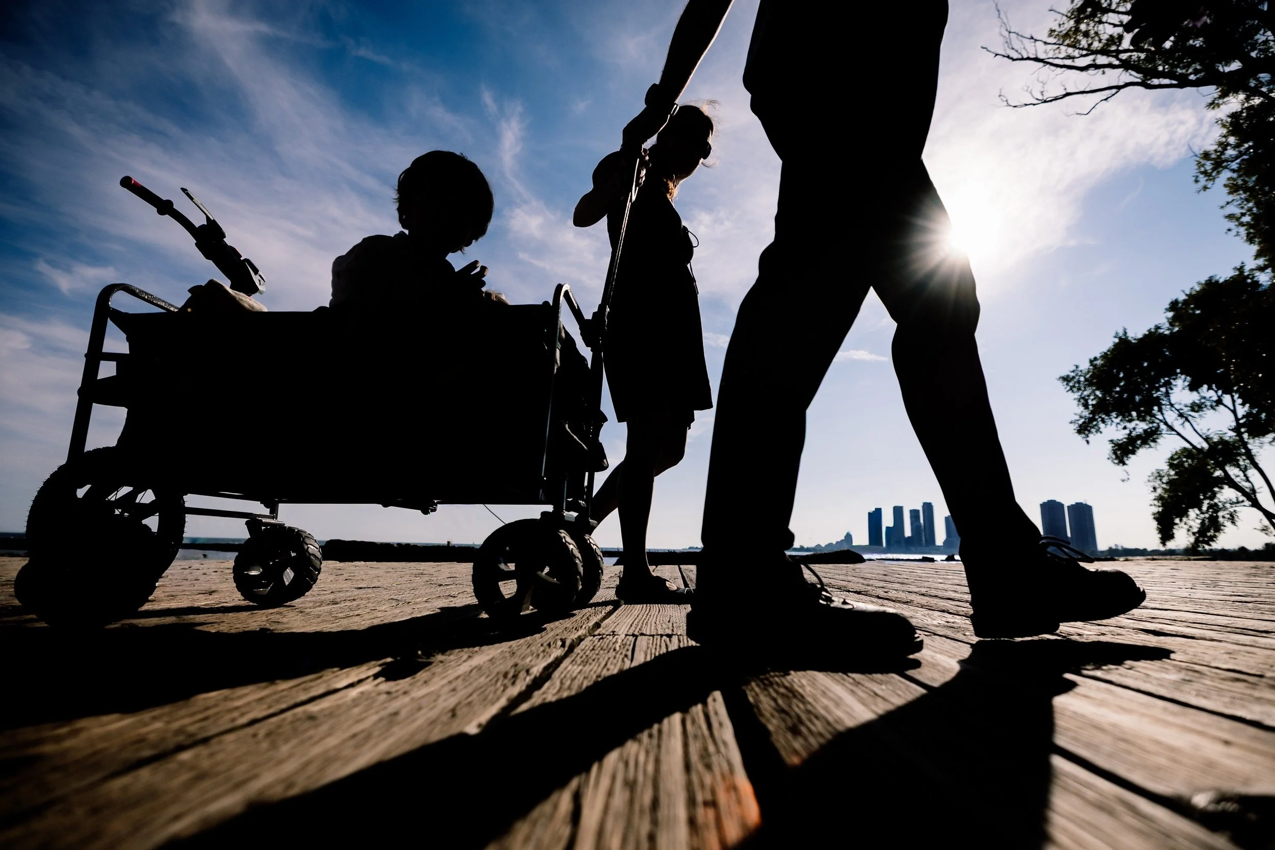 The beach was a natural pause point, where the whole family played in the sand together. Later, we found an empty splash pad, the perfect wide-open stage for chasing each other and rolling a bright red ball back and forth. Along the boardwalk, the kids darted after birds while their parents followed behind.
